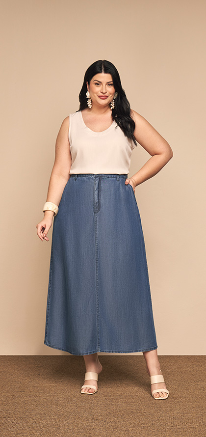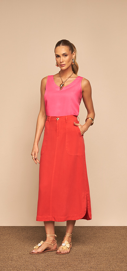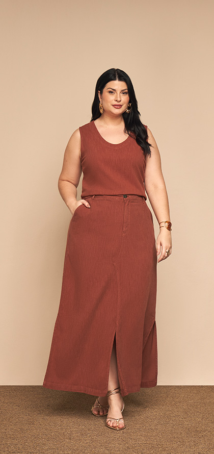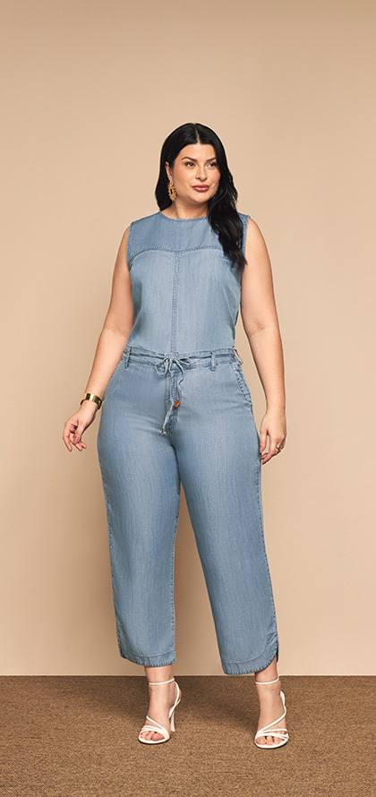 8744 - COLETE SARJA CROPPED 8695 - BERMUDA SARJA MIDI