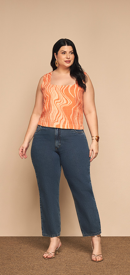 8749 - REGATA LINHO CROPPED 8697 - CALÇA JEANS MOM