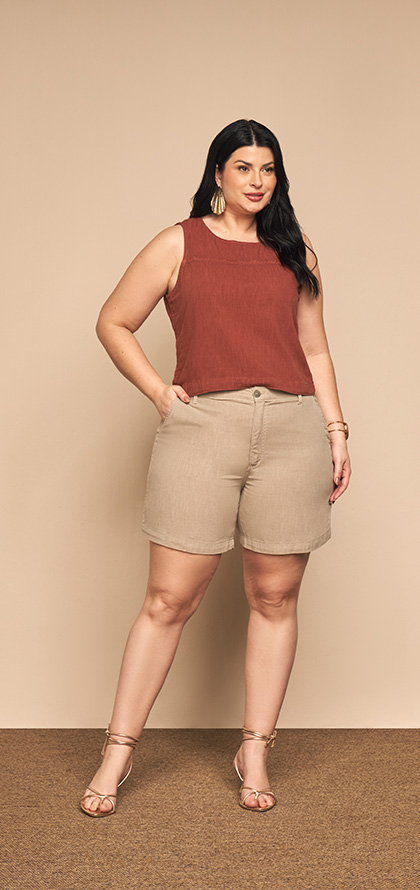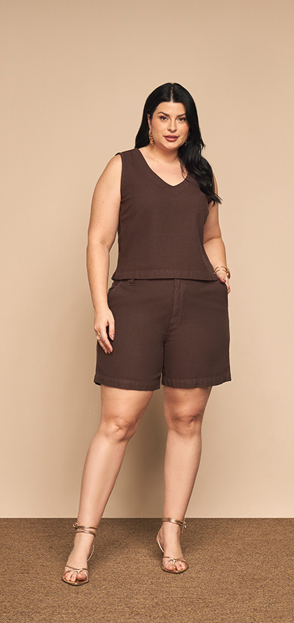 8742 - COLETE LINHO CROPPED 8733 - SHORTS LINHO COMFORT