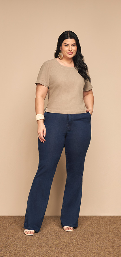 8736 - BLUSA LINHO 8696 - CALÇA JEANS BOOT CUT ESTATURA BAIXA