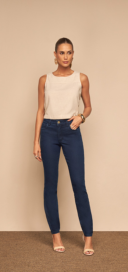 8747 - REGATA LINHO CROPPED 8714 - CALÇA JEANS SKINNY CIGARRETE